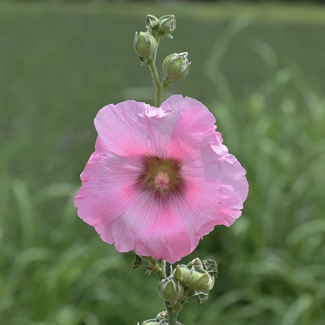 While planting the dahlias this Hollyhock was growing mid-row, so we left it in place.