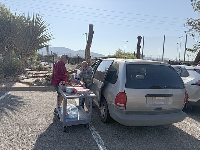 The caravan entered the Expo New Mexico fairgrounds and snaked their way around to the building where horticulture events will take place. Unloading went as smoothly as the loading. There was much to do after unloading after which volunteers began prepping the space for the show by organizing, setting up tables and cleaning. The New Mexico State Fair runs from September 4th to September 14.